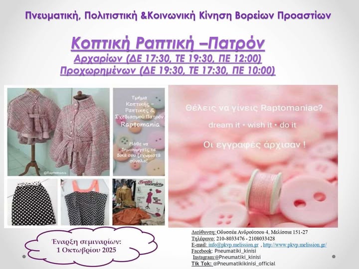 Κοπτική Ραπτική & Σχεδιασμός Πατρόν