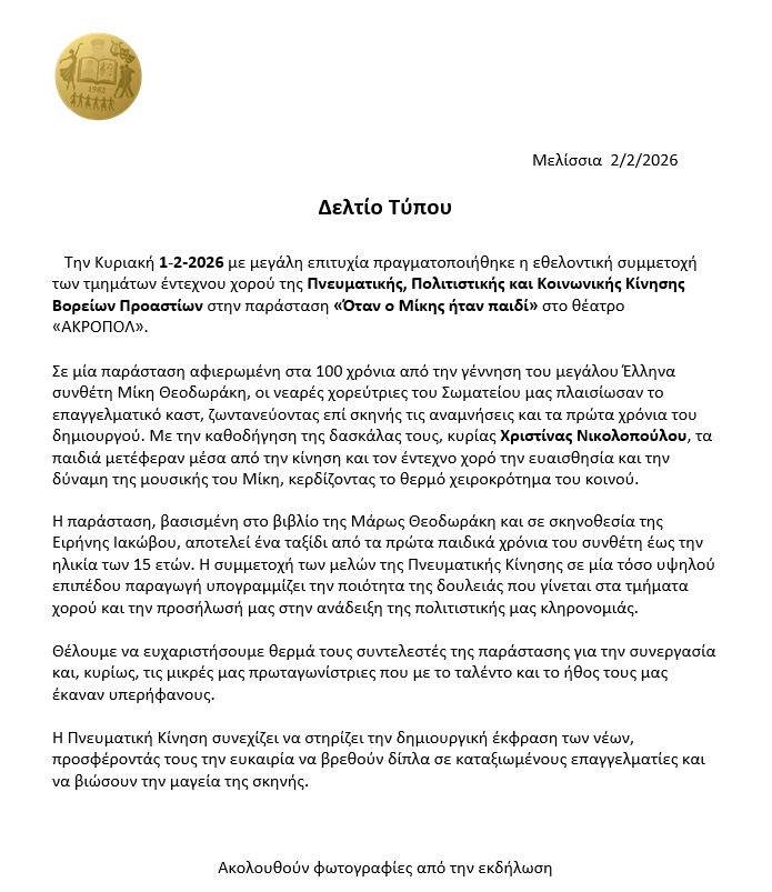 Φεβ 05 Συμμετοχή Ομάδων Έντεχνου Χορού στην παράσταση «Όταν ο Μίκης ήταν παιδί» στο θέατρο Ακροπόλ Written by Γραμματεία. Posted in Χωρίς κατηγορία Continue Reading No Comments