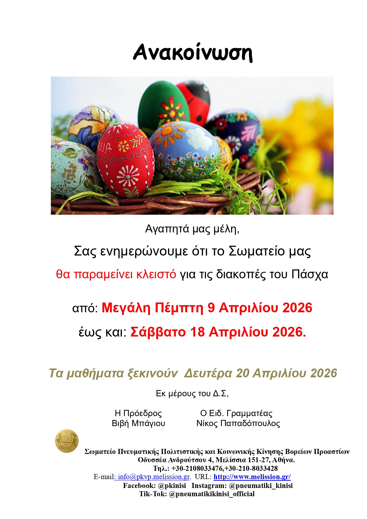 Ιαν 16 Κοπή Βασιλόπιτας Σάββατο 24 Ιανουαρίου 2026 Written by Γραμματεία. Posted in Χωρίς κατηγορία Continue Reading No Comments